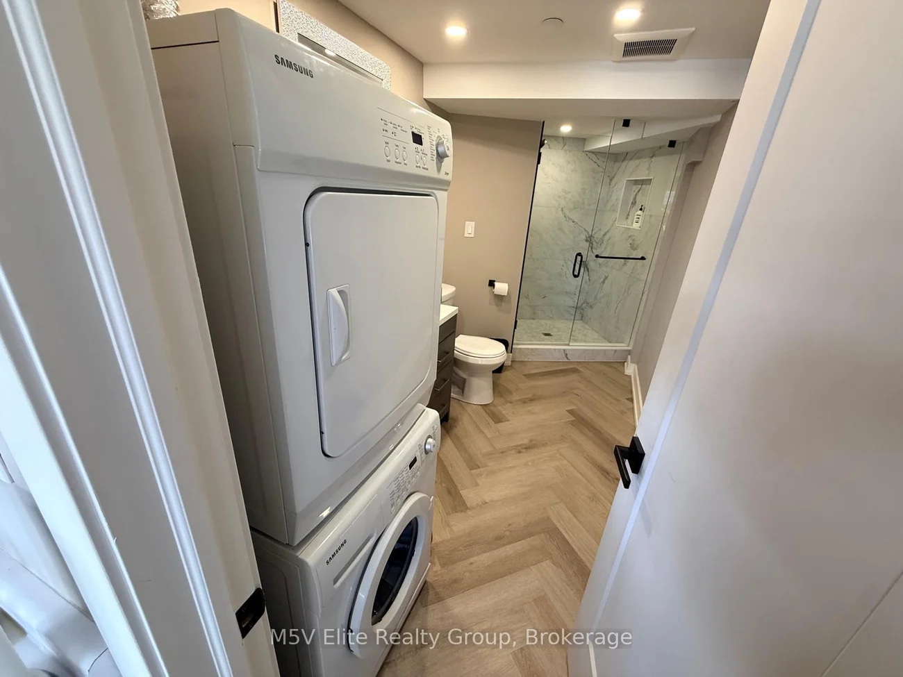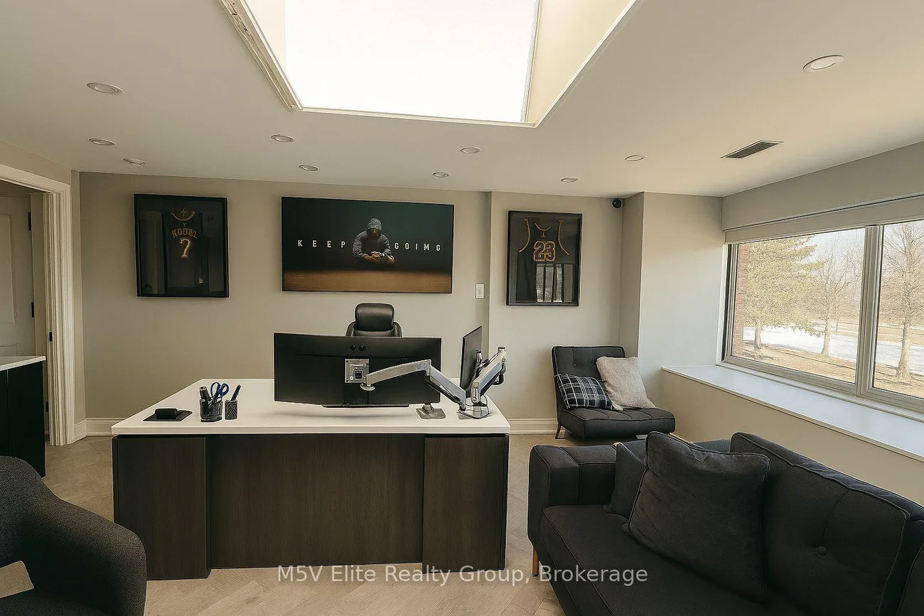An exceptional opportunity to own two adjoining fully renovated commercial units in a prime Vaughan location, offering a combined 3,710 sq. ft. of modern, fully finished space. Filled with natural light from expansive windows, this versatile property features nine private offices in total, generous open areas for meetings or collaborative work, and flexible space that could accommodate additional uses or potential rental income.The layout includes a boardroom with soaring ceilings and potential for a mezzanine, a well-equipped kitchenette/full kitchen, and multiple washrooms. The primary office is highlighted by a skylight, automated blinds, and a full washroom with shower and convenient laundry facilities for added functionality. Recent upgrades throughout include herringbone-pattern flooring, LED pot lighting, modern kitchens and washrooms, a security system, and surveillance cameras. Two staircases, including a stylish spiral staircase, add architectural character.Ideal for a professional office, creative workspace, small business, or place of worship, this property offers exceptional flexibility to suit a variety of business needs. Located in a well-maintained professional building with ample parking, low property taxes, and low maintenance fees, it is perfectly positioned in Vaughan just 4 minutes from Highway 427 and minutes to both Toronto and Brampton.Vendor Take-Back financing may be available for qualified buyers, providing additional flexibility for this unique commercial opportunity.