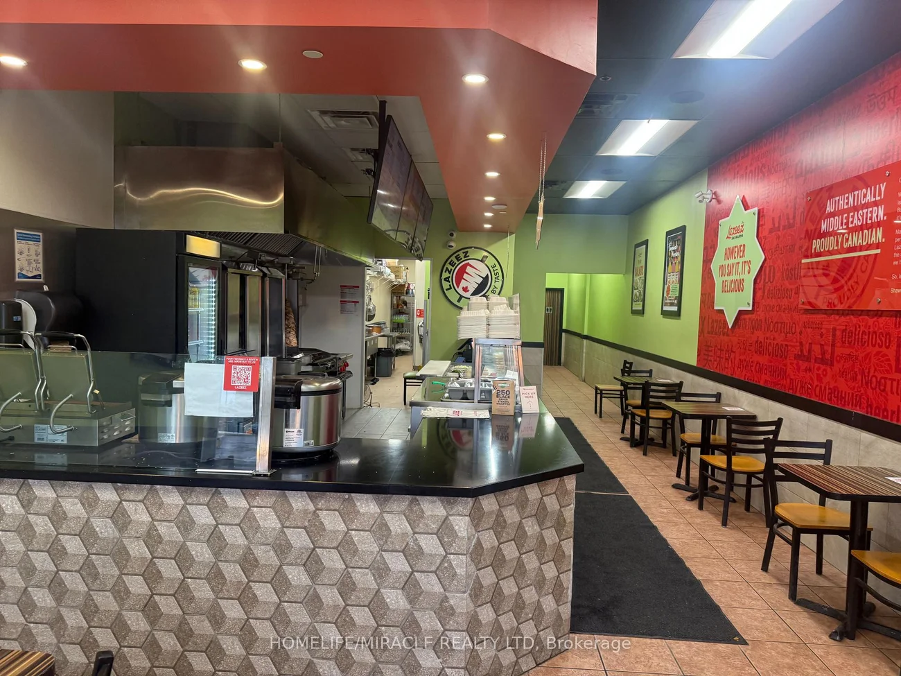 Lazeez Shawarma Business in Woodbridge, ON is For Sale. Located at the busy intersection of Rutherford Rd/Islington Ave. Surrounded by Fully Residential Neighbourhood, Close to Schools, Highway, Offices, Banks, Major Big Box Store and Much More. Business with so much opportunity to grow the business even more. Rent: $5087.30/m including TMI & HST, Lease Term: Existing + 5 years Option to renew, Royalty: 5%, Advertising: 2%.
