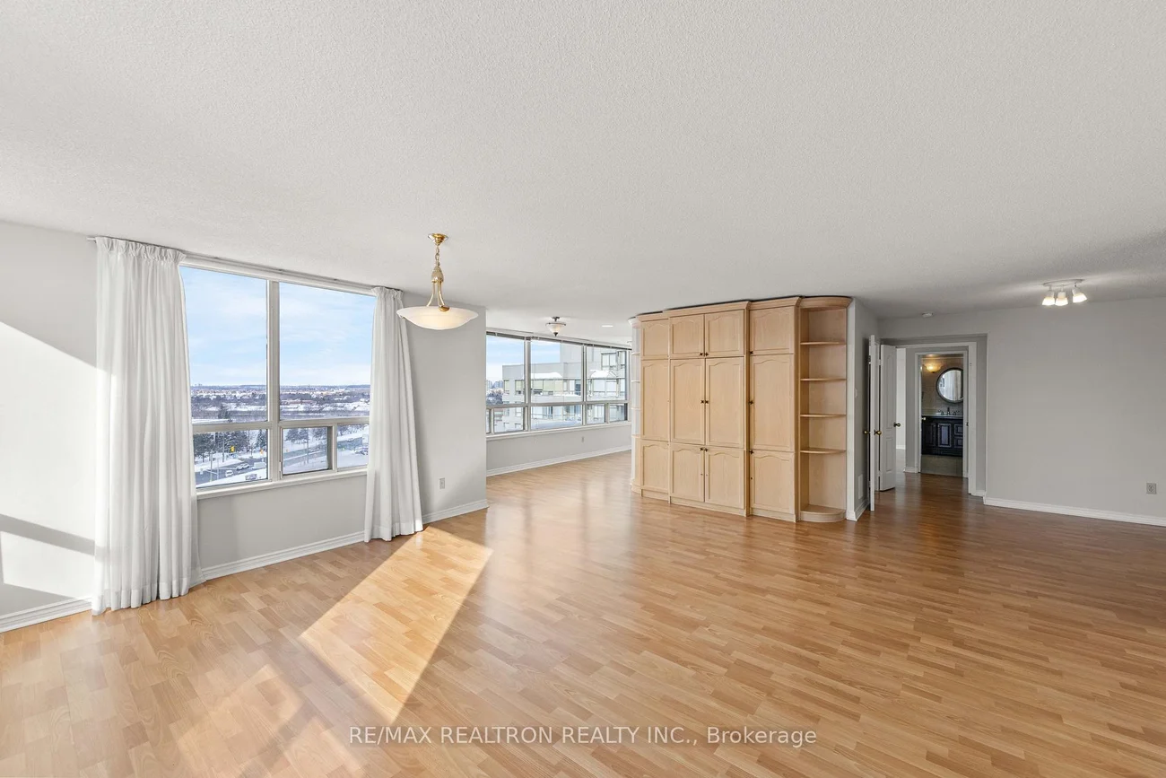 Luxury Condo Living In This Bright & Spacious 2 Bedroom, 2 Bathroom Unit with One extra-large parking space-ideal for oversized vehicles. In A Highly Desirable High Rise Building In The Heart Of Thornhill! With Breathtaking Unobstructed Views! Over 1500 Sq.Ft Of Open Concept Living Space With An Expansive Living And Dining Area That Extends Efortlessly Into A Oversized Solarium! Bright & Well Maintained Galley Kitchen Featuring Ample Counter Space, A Functional Layout For Everday Cooking, And A Large Breakfast Area With Wraparound Windows! The Primary Retreat Features Large Windows, Walk Out To Balcony Offering Picturesque Views, A Walk-In Closet And A 4-Piece Ensuite! Spectacular Facilities: Indoor Pool, Sauna, Fitness Centre, Recently Renovated Squash And Tennis Courts, 3 Pickle Ball Courts, Meeting Room, Guest Suites, Visitor Parking, And 24-Hour Concierge Service. Perfectly Located With Immediate Access To TTC, Highways, Shopping, Dining, Parks, And Schools & Much More!