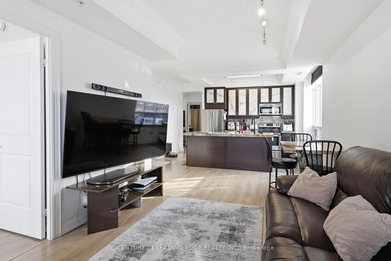 Discover refined living in this 882 sq ft European-inspired boutique corner condo, where 9 ft ceilings and warm west sunlight create a bright, inviting ambiance. The beautifully upgraded kitchen features a tray ceiling, crown moulding, premium cabinetry with marble inlays, exotic granite for the centre island, countertops, backsplash and window ledge with a matching dining table, and stainless steel appliances which is perfect for effortless entertaining. The open-concept living and dining area, enhanced with elegant crown moulding, provides a spacious and airy canvas for gatherings or quiet evenings with a great size balcony. The primary bedroom offers a serene retreat with a walk-in closet and 3-piece ensuite, while the second bedroom is ideal for children, guests, a home office, or hobbies. The additional 4-piece bathroom adds everyday convenience. Both bathrooms have upgraded Brazilian Exotic Quartzite for vanities. Rarely offered, this unit includes 2 underground parking spaces and a locker. Enjoy resort-style amenities including a landscaped courtyard with BBQ, fitness room, party room, and visitor parking, and not to forget the main floor stores! (Dental Office, Healthcare, Spa & Skin Care, Jewelry). Ideally situated just steps from Maple GO Station, Vaughan Mills, Cortellucci Hospital, Canada's Wonderland, Highway 400, parks, trails, restaurants, and a golf course. This condo truly has it all.