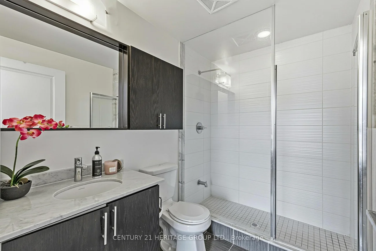 Rare opportunity to own a bright and spacious 870 sq ft 2 bedroom, 2 bathroom corner-unit condo with a versatile study in the highly sought-after Beverley Glen community. This well-maintained suite features 9 ft ceilings and an open concept living and kitchen area, creating a bright and airy space perfect for everyday living and entertaining. Enjoy seamless indoor & outdoor living with a walk out to an oversized private terrace of approximately 200 sq ft, ideal for relaxing or hosting guests. The functional layout offers generously sized bedrooms, including a primary bedroom with its own ensuite. Includes owned parking and locker for added convenience. Residents enjoy premium building amenities including 24hr concierge, indoor pool, gym, sauna, party room, media room, and guest suites. Conveniently located close to transit, shopping, parks, restaurants, and everyday essentials.