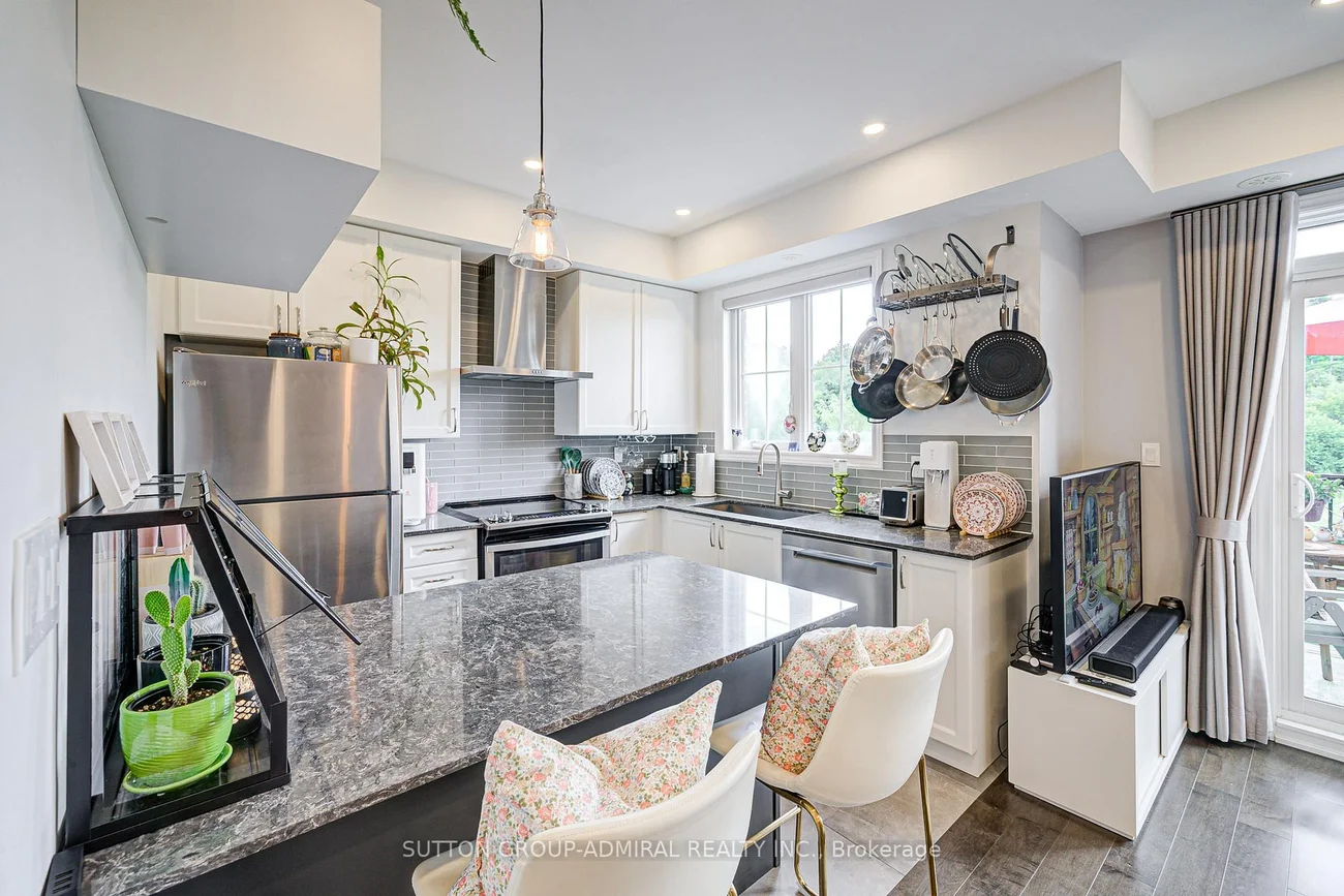 Step into this immaculate luxury stacked townhome, where modern design meets effortless living. This bright end-unit offers 2 bedrooms and 3 bathrooms, showcasing a thoughtfully designed layout filled with natural light from multiple exposures. Enjoy serene sunrise views over the trees from your private balcony, while the open-concept living space, enhanced with pot lights, creates the perfect setting for both relaxing and entertaining. The kitchen is beautifully finished with granite countertops, stainless steel appliances, and a built-in bar that elevates everyday living.The primary suite offers a refined retreat, complete with a sleek 3-piece ensuite featuring a frameless glass shower and custom closet organizers for added functionality. With dual balconies and an end-unit position, this home feels open, airy, and inviting throughout.Situated in a highly desirable Woodbridge community, you're just minutes to major highways, transit, shopping, and dining-offering the perfect balance of convenience and lifestyle.Includes 2 lockers and 1 underground parking space and additional visitor parking for added convenience. A turnkey opportunity for those seeking low-maintenance luxury in one of Vaughan's most sought-after neighbourhoods!