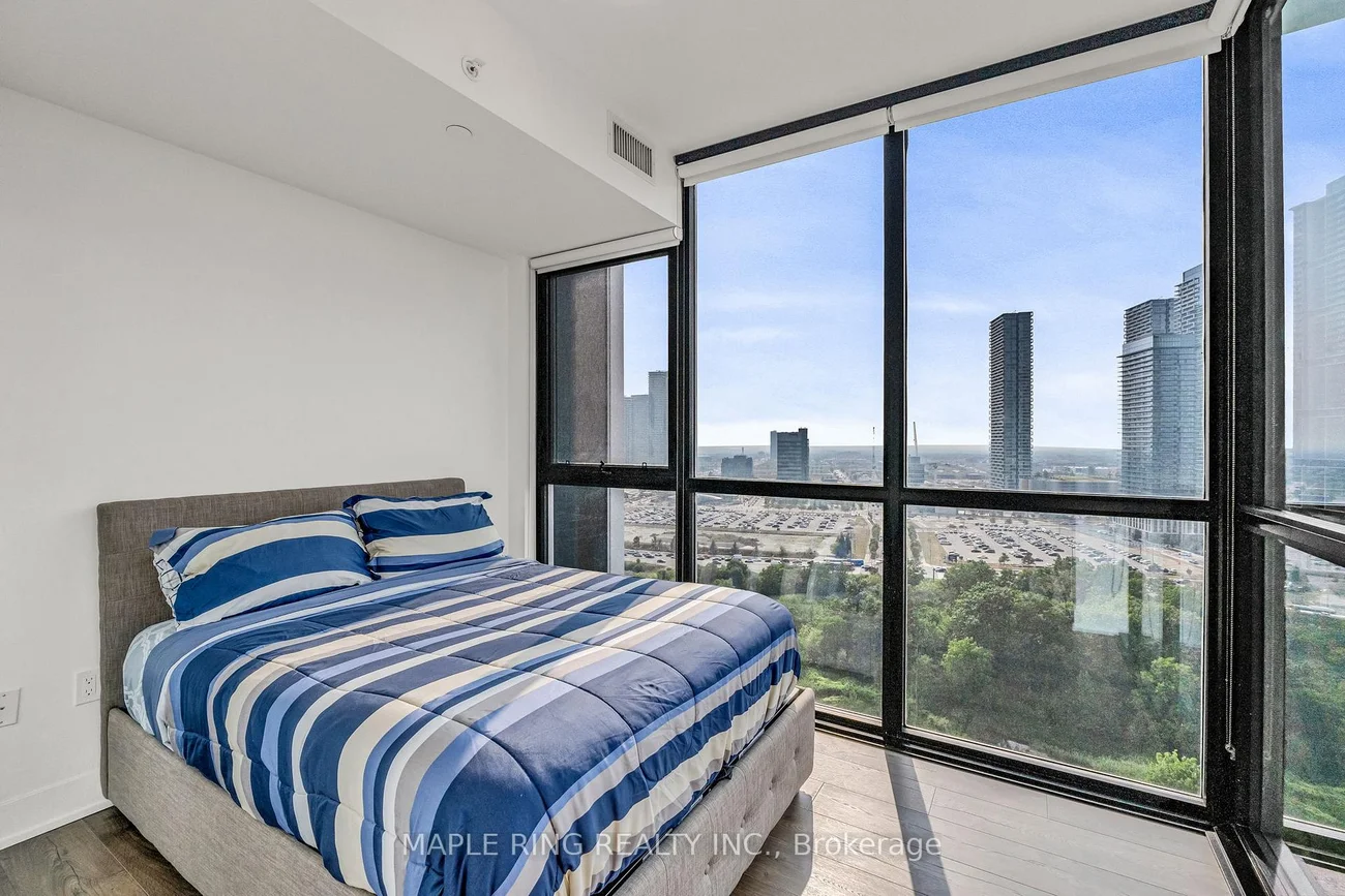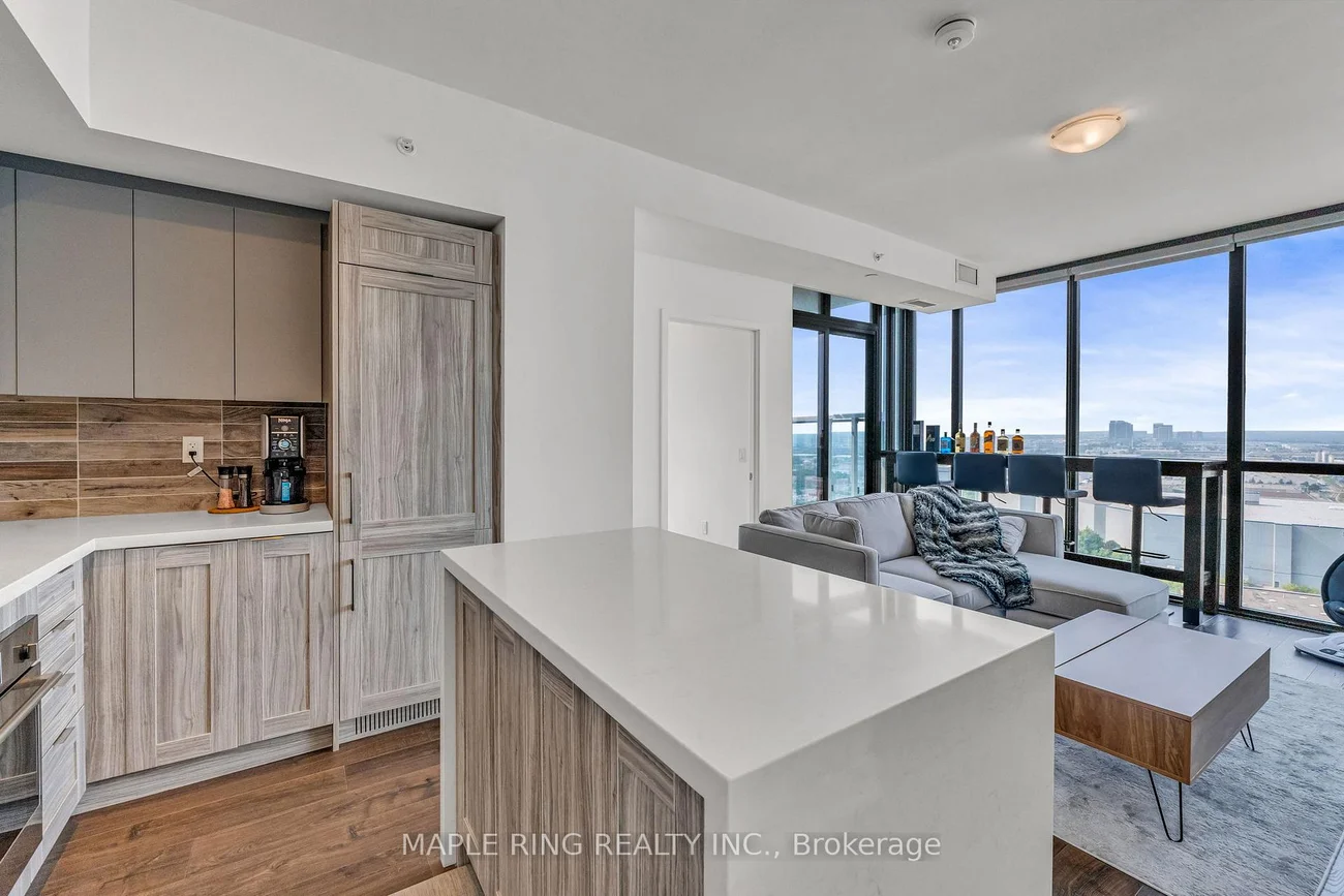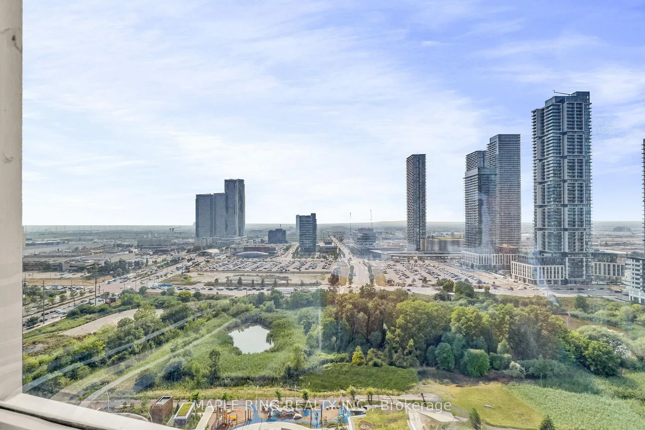 Welcome to this stunning, upgraded 2-bedroom, 2-bath luxury corner suite perfectly located in the heart of Concord! This immaculate residence and showcases true pride of ownership. Enjoy a spacious open-concept layout with 9-foot smooth ceilings, floor-to-ceiling windows, and breathtaking, unobstructed views of the park and VMC Skyline. The modern kitchen features a rare freestanding quartz waterfall island, panel-ready built-in appliances, and sleek, upgraded finishes throughout. This highly sought-after split-bedroom floor plan offers two generous bedrooms with ample closet space and upgraded bathrooms. Includes one parking spot on P1, ideally located near the elevator. Community Amenities include Pharmacy, Aisle24 Markey, Indoor Children Playground and Cortellucci Square Park. Located near TTC Vaughan Metropolitan Stop , Vaughan Mills, Niagara University, York University, top restaurants, shops, and groceries, with excellent transit access via VMC Subway, TTC, Zum, and Viva, and easy connectivity to Highways 400 & 407.