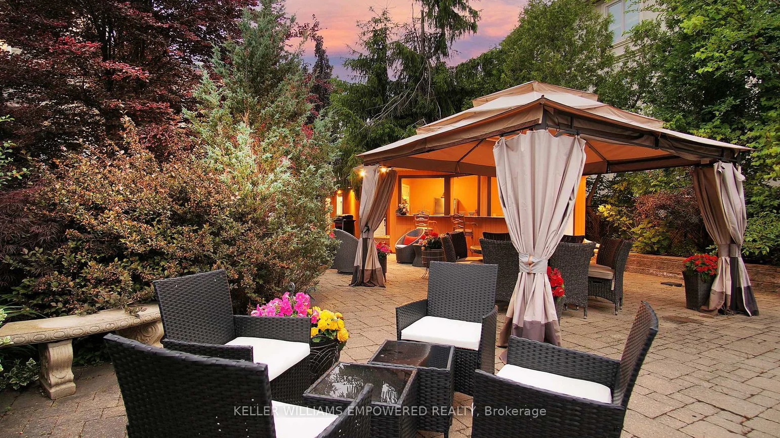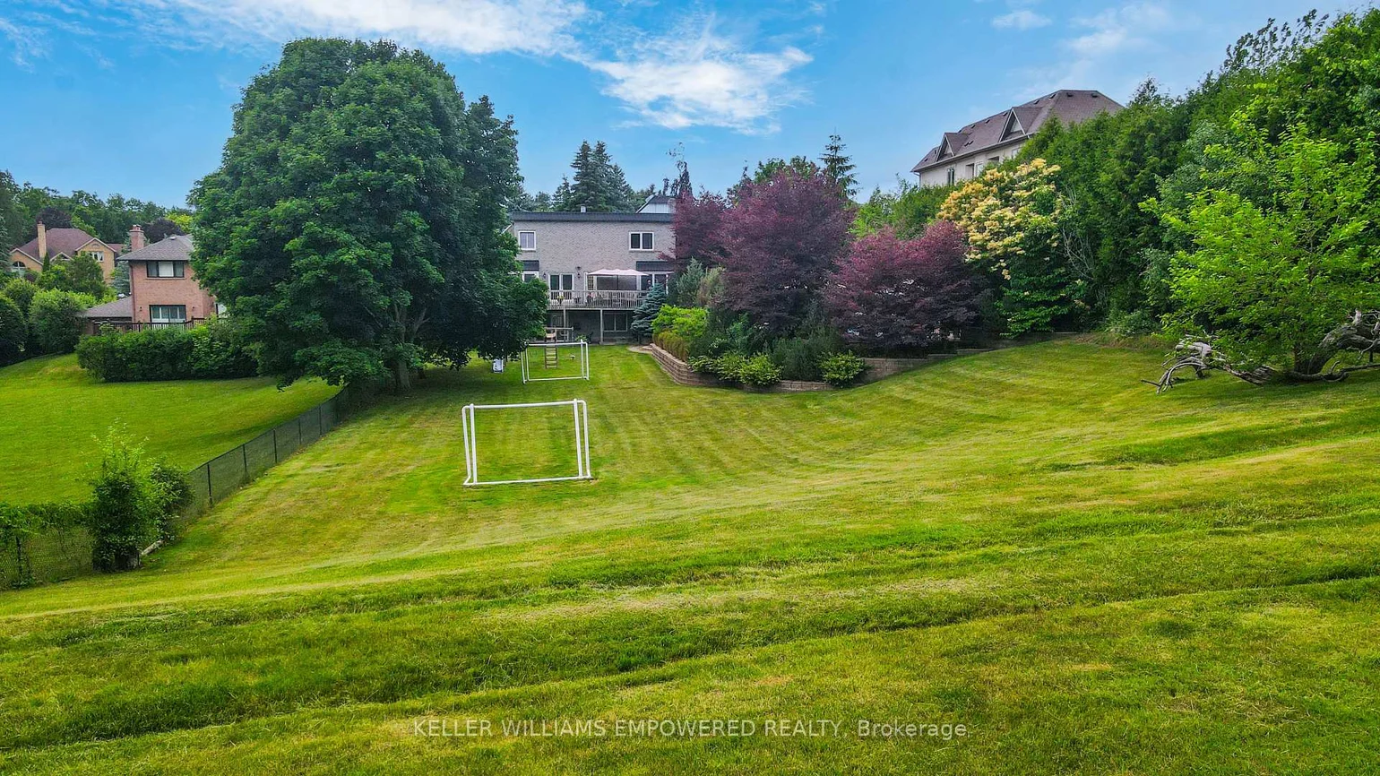 Sitting on a fantastic 1.01 acres in prestigious Woodland Acres, this custom-built estate offers ultimate privacy, luxury finishes, and breathtaking views. This is a one-of-a-kind retreat offering unmatched comfort and natural beauty. The landscaped front grounds feature towering mature trees and lush perennial gardens with abundant privacy. In the rear, a true backyard oasis awaits with an inground pool, large gazebo, swing set, fantastic table space, and a fully equipped cabana with granite countertops, stainless steel fridge, smooth-top stove, two sinks, and a 3-piece bath with separate shower area. Multi-level stone patios, staggered gardens, and expansive lawns make this an entertainers dream. Inside, a grand 2-storey foyer with skylights and marble floors leads to elegant principal rooms, including a family room with a floor-to-ceiling fireplace and balcony walk-out, a living room with medallion ceiling and window bench, and a sunlit family room. The gourmet kitchen boasts Blue Pearl granite floors/counters, Sub-Zero and Miele appliances, a large island, and built-in desk, with a breakfast area that walks out to the rear patio. Upstairs, the primary suite features hardwood floors, a sitting area with balcony access, wood-burning fireplace, and a spa-like ensuite with Jacuzzi, His & Hers vanities, glass shower, and cathedral windows. The second bedroom has its own ensuite with glorious views of the rear grounds. Bedrooms three and four share an architecturally eye-catching bathroom, including a 5-pc marble bath with sloped glass roof. The second-floor laundry room adds convenience. The walk-out lower level offers a rec room with fireplace, steam sauna, 2-pc bath, and plenty of storage. Additional highlights include geothermal heating, European multi-lock windows, three fireplaces, French doors, pot lights, skylights, and multiple balconies. Walk to top-ranked St. Theresa CHS and drive to SAC, SAS, HTS, Lauremont, CDS & Vilanova.