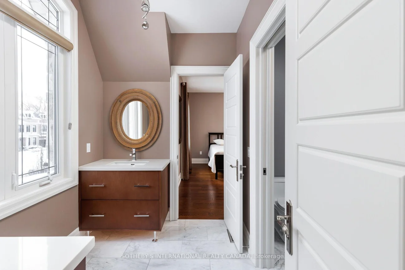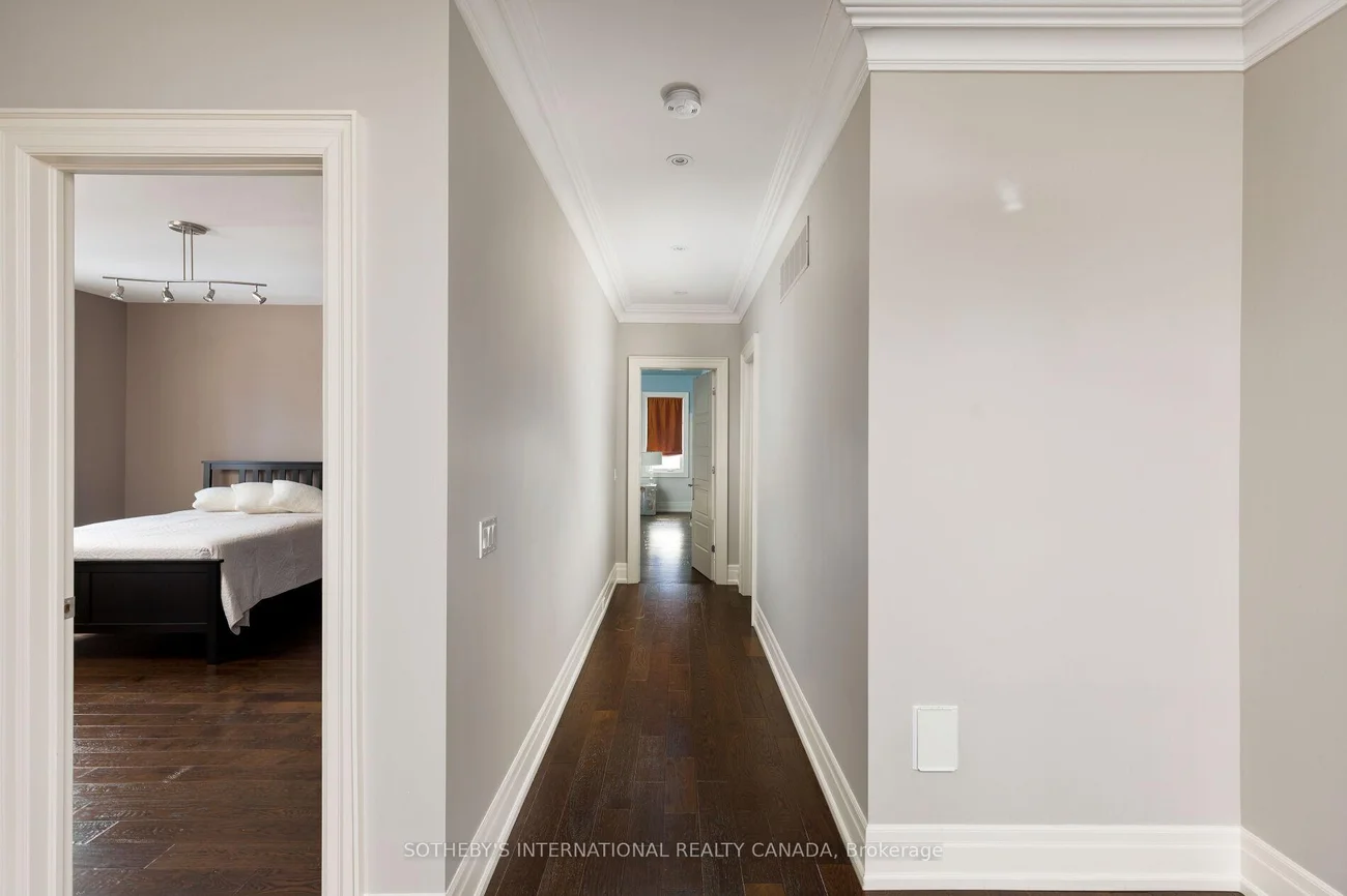Exquisitely located in the heart of Old Maple, steps from the state-of-the-art Cortellucci Vaughan Hospital, this bespoke custom residence defines luxury living with effortless access to major highways, elite schools, Vaughan Mills, parks, and Toronto. Spanning approximately 5,400 sq ft of living space, the home's timeless exterior features Belden reclaimed brick, natural stone accents, and elegant architectural detailing. Professionally landscaped, fully fenced grounds include mature trees, interlock walkways, and an expansive covered loggia with built-in speakers-perfect for sophisticated entertaining. A matching designer shed and three-car tandem garage complete the exterior. Inside, an 8' custom arched mahogany door opens to soaring 10' ceilings, marble flooring, and hand-scraped oak throughout the main level. Formal living and dining rooms, a butler's servery with wine fridge, and a designer mudroom offer both elegance and functionality. The chef's kitchen boasts marble floors, coffered ceiling, ceiling-height cabinetry, Sub-Zero and Wolf appliances, oversized granite island, quartz surfaces, and sliding doors to the loggia. The family room features a gas fireplace, cultured stone feature wall, and custom built-ins. Upstairs, the lavish primary retreat offers a coffered ceiling, spa-inspired six-piece marble ensuite, and expansive his-and-hers walk-in closets. Three additional bedrooms feature private ensuites and walk-in closets, while a convenient laundry room completes the level. The lower level includes 8.5' ceilings, heated flooring, built-in speakers, a walk-up, and roughed-in fireplace, providing exceptional versatility.
