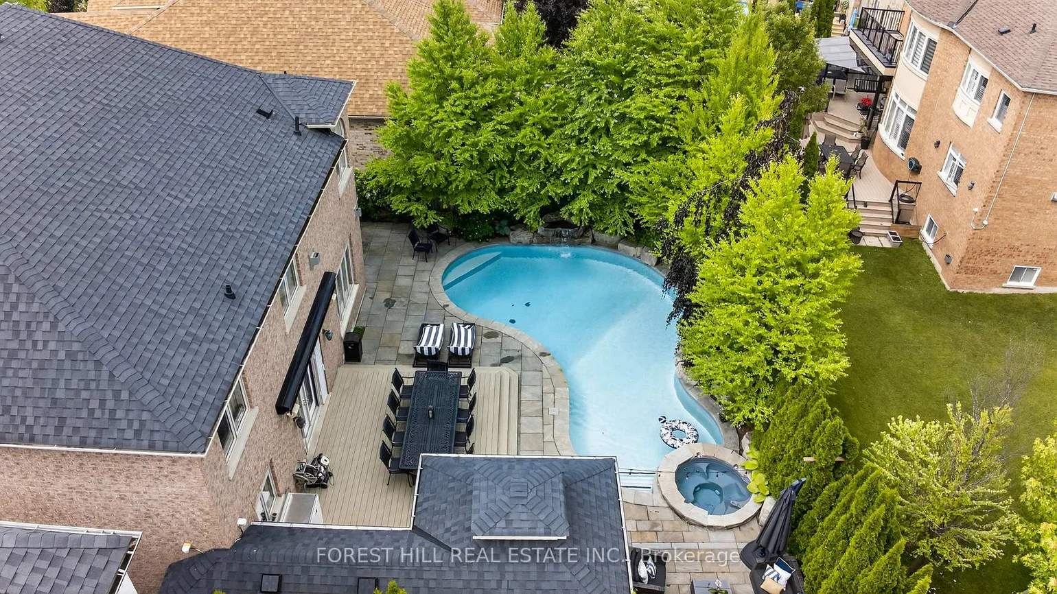 Welcome to 110 Cook Mill Crescent an extraordinary residence nestled on the most sought-after street in the entire Valleys of Thornhill, one of Vaughan's most prestigious neighbourhoods. This stunning home offers a rare 60-foot frontage overlooking a tranquil pond, delivering total privacy and unmatched curb appeal in a truly elite setting. Boasting 4+2 bedrooms and 6.5 bathrooms, the home features complete customization and designer finishes throughout. A spectacular custom kitchen, completed in 2023, is equipped with top-of-the-line stainless steel appliances, a large island, and a stylish butlers pantry perfect for both everyday living and entertaining. All bathrooms have also been recently renovated with luxurious, high-end finishes. The main floor showcases rich hardwood floors, coffered ceilings, crown mouldings, wainscoting, and intricate custom millwork. The formal living and dining areas include a custom bar, while the spacious family room highlighted by a fireplace and custom media unit opens directly to your own private backyard oasis. Step outside to a resort-style retreat featuring a saltwater pool with a spillover hot tub, composite deck, beautifully landscaped gardens, a heated cabana, and mature trees offering complete privacy and tranquility. Upstairs, the oversized primary suite offers a luxurious ensuite and a spacious walk-in closet that can easily be converted into a fifth bedroom. The finished basement is a dream recreation space for families, including a custom wood and stone wet bar, a large rec room, two additional bedrooms, and an incredible sports and gaming playroom where kids can enjoy endless fun. The heated three-car tandem garage also features a private staircase with direct access to the basement, adding convenience and versatility.110 Cook Mill Crescent is a true masterpiece offering the perfect blend of luxury, privacy, and modern living in Vaughan's most coveted community.