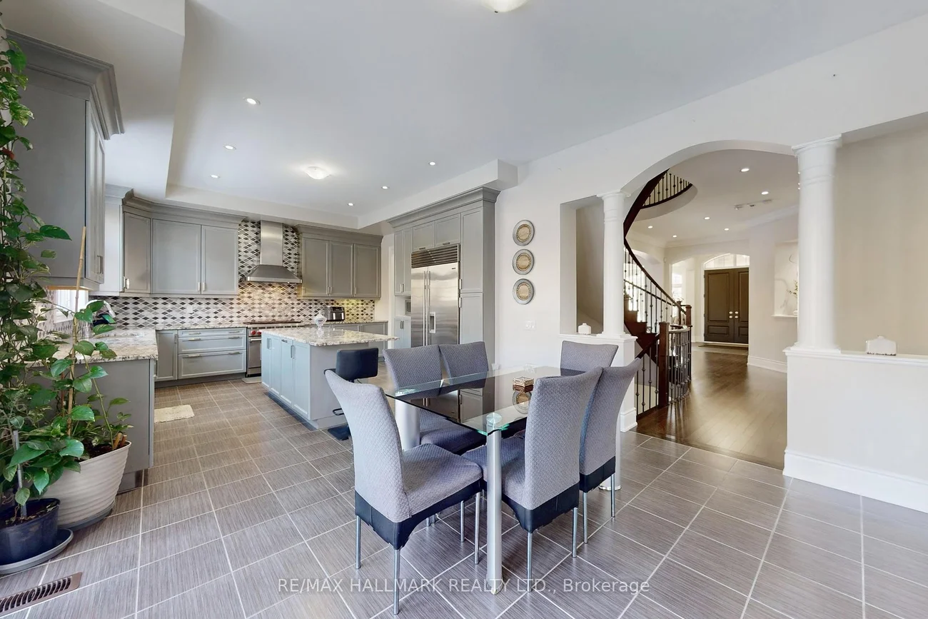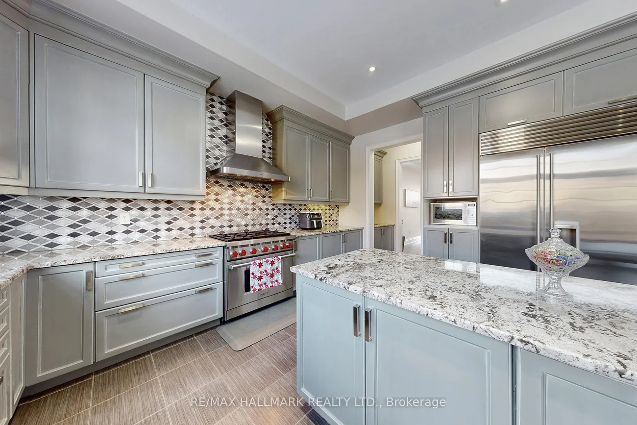Absolutely Stunning 5-Bedroom Detached Home Offering Over 4,600 Sqft of Living Space, Located In The Prestigious Kleinburg Community! This exceptional home sits on a premium pie-shaped lot spanning approximately 160 feet at the rear, fully fenced and complete with an interlock patio ideal for outdoor entertaining. The interior showcases elevated craftsmanship and thoughtful design throughout, featuring custom interior doors, rich hardwood flooring, extensive pot lighting, crown moulding, and soaring ceilings including 10' ceilings on the main level, 9' ceilings on the second flr, and 8' interior doors. At the heart of the home is a chef-inspired kitchen with custom cabinetry, Sub-Zero refrigerator, and Wolf gas range, seamlessly blending luxury with everyday functionality. A dedicated soundproof main-floor office provides the perfect private workspace. All five bedrooms offer private ensuite baths, providing comfort and privacy for family and guests alike. The walk-out basement with 9' ceilings and a separate entrance offers excellent potential for an in-law suite or future secondary apartment. This home has been thoughtfully updated with a new high-efficiency furnace, dishwasher, GE front-load washer and dryer combo, and updated light fixtures throughout. Recent enhancements also include fresh interior paint, custom closet organizers, a new front entry railing, and a newly painted fence. The rear yard has been improved with a patio designed for outdoor enjoyment, while added conveniences include three garage door openers with remotes and an outdoor camera security system for added peace of mind. Just minutes from top-rated schools, parks, and major highways, all within one of Kleinburg's most sought-after neighbourhoods!