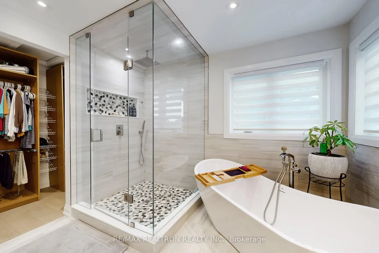 Beautifully renovated executive detached home in the Patterson community of Vaughan. This impressive Greenpark home offers approx 4,000 sq ft of finished living space, thoughtful designs, high-end upgrades, exceptional functionality for modern family living. Featuring 4 spacious bedrooms & 5 bathrooms. Upper level includes bedrooms 2 private ensuites plus a shared bathroom. The primary suite is a true retreat with a massive walk-in closet, separate his and hers sections, a spa-inspired ensuite featuring standalone tub, large glass shower with rain & handheld fixtures, elegant tile finishes.The main floor has been completely reimagined with an open concept layout, premium Coswick white oak engineered hardwood flooring, a dramatic floating staircase with white oak treads & wrought iron pickets, a skylight that fills the home with natural light. The custom chef's kitchen features quartz counters, two-tone cabinetry, an oversized 8' island with seating, high-end cabinetry with multiple organizers. Walk-out patio doors open fully to the backyard, perfect for indoor-outdoor entertaining.The finished basement is designed for entertaining with a full granite bar, wine fridge, home theatre wiring, electric fireplace, workshop or gym area, & generous storage including a large cold room. Outside, enjoy a private fenced yard with interlocking stone, raised gardens, natural gas BBQ line, and a 20' cedar gazebo with retractable cover. Additional highlights include a metal roof with 50-yr warranty (2016), new AC (2021), new garage door (2025), and parking for 6 vehicles with a double garage and interlock driveway. Located in a family-friendly neighborhood close to parks, schools, transit, and just minutes to Vaughan Mills, Canada's Wonderland & major highways. This exceptional home offers space, quality, and convenience in one of Vaughan's most sought-after communities.
